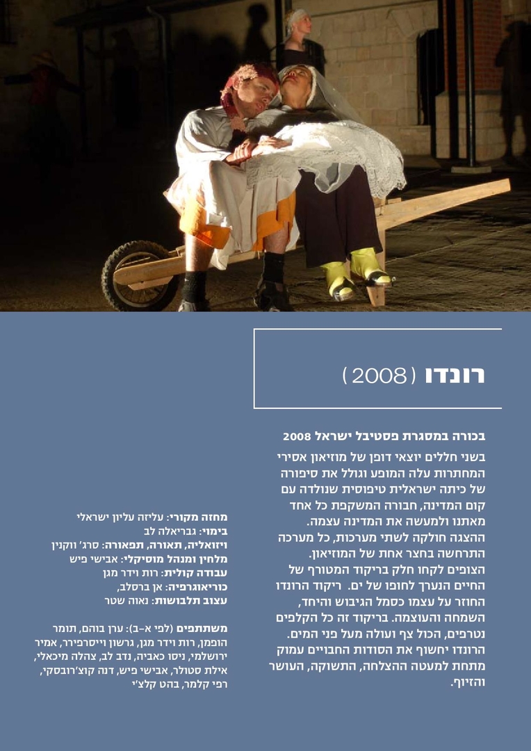 מחזה מאת: עליזה עליון ישראלי | בימוי: גבריאלה לב | עיצוב תפאורה ותאורה: סרג' אואקנין | עיצוב תלבושות: נאוה שטר | ניהול מוזיקלי: אבישי פיש | כוראוגרפיה: אן ברסלב