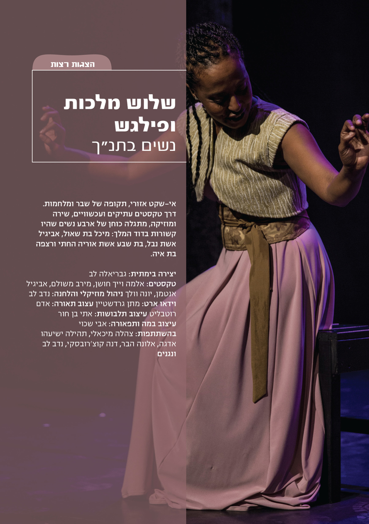 אי-שקט אזורי, תקופה של שבר ומלחמות. דרך טקסטים עתיקים ועכשוויים, שירה ומוסיקה, מתגלה כוחן של ארבע נשים שהיו קשורות בדוד המלך: מיכל בת שאול, אביגיל אשת נבל, בת שבע אשת אוריה החתי ורצפה בת איה